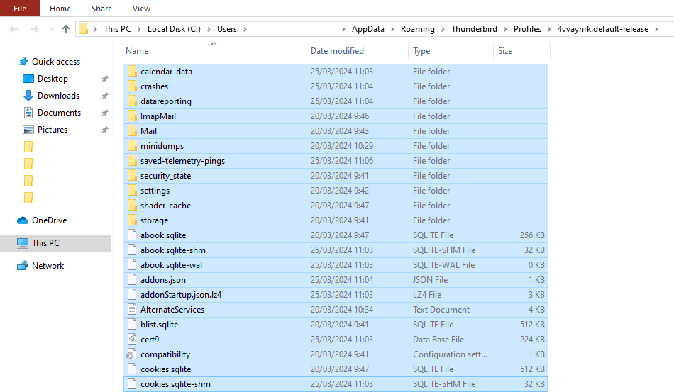1. Locate and open the Thunderbird profile folder on your local computer.