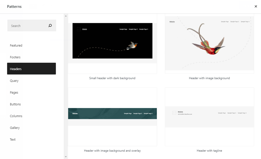 Another option is to use regular or unsynced block patterns – pre-built block layouts available for different purposes.