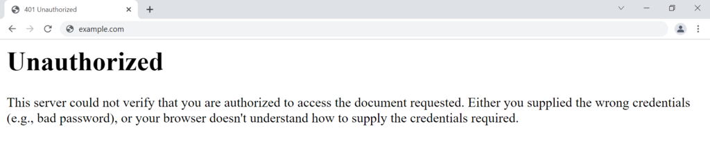 | Error variations | HTTP Error 401 Unauthorized 401 Unauthorized Error Error 401 Unauthorized Access Denied 401 Authorization Required |