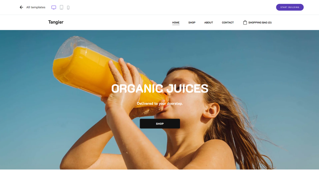 For example, an eCommerce template like Tangier has product pages and a shopping cart integration. Also, it is a great template for food eCommerce businesses, as it has a clean and colorful design.