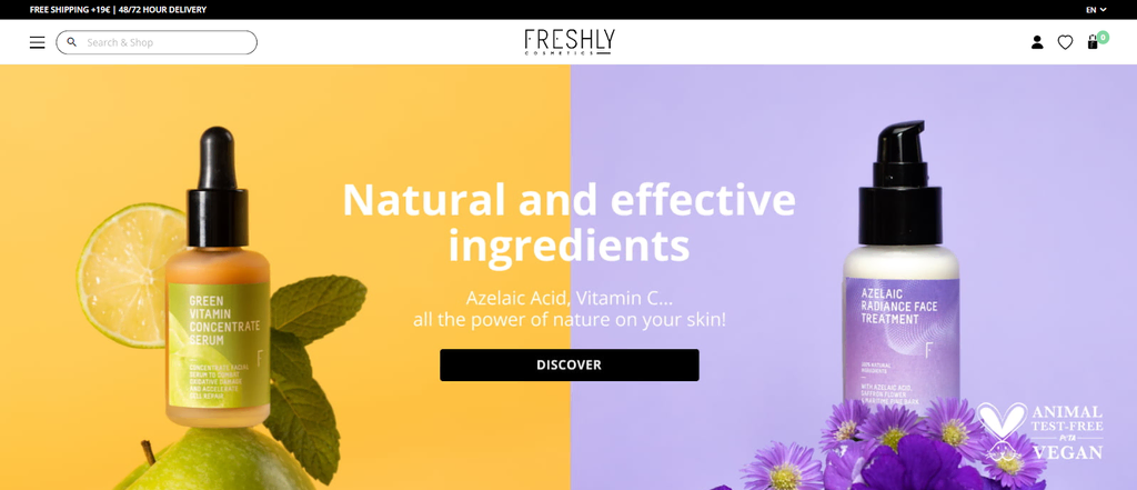PrestaShop is best for medium to large eCommerce stores. A great example of a PrestaShop store is Freshly Cosmetics, with its multilingual feature. The website is available in English, Spanish, Catalan, Italian, Portuguese, and French.