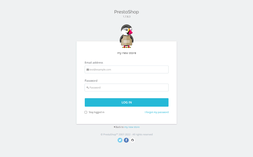 7. Insert your Email and Password to log into your PrestaShop account and access your Dashboard