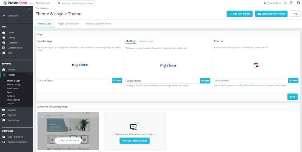 Another built-in feature of PrestaShop is the ability to add the Favicon, Header, Mail, and Invoice logo
