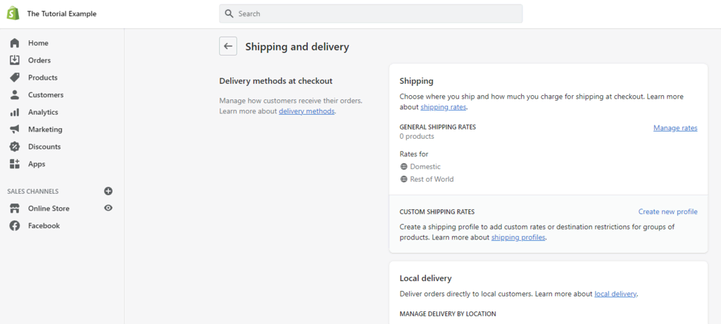 • Delivery methods at checkout. Choose how much you charge for shipping at checkout. Create a shipping profile to add custom rates or destination restrictions.