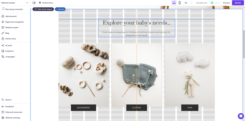 For this, check out our AI Website Builder, which works similarly to Wix’s Artificial Design Intelligence (ADI).