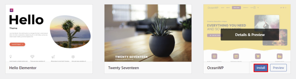 After the installation process is complete, you’ll see Live Preview and Activate buttons when you hover over the theme.